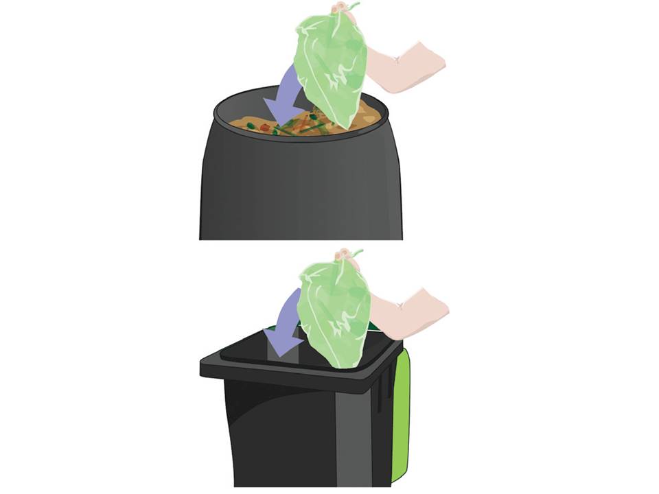 Compostable bag (made from corn starch) which can be added directly to your compost bin.